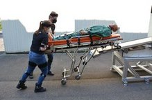 In order to compare the physical stresses arising in use, the IFA performed measurements on these three different wheeled stretcher and pull-in/lock-in systems under laboratory conditions on behalf of several accident insurance institutions. To simulate the lifting and loading/unloading processes as realistically as possible during the laboratory measurements, a dummy was placed on the wheeled stretcher, and employees in the ambulance services were recruited as test subjects.